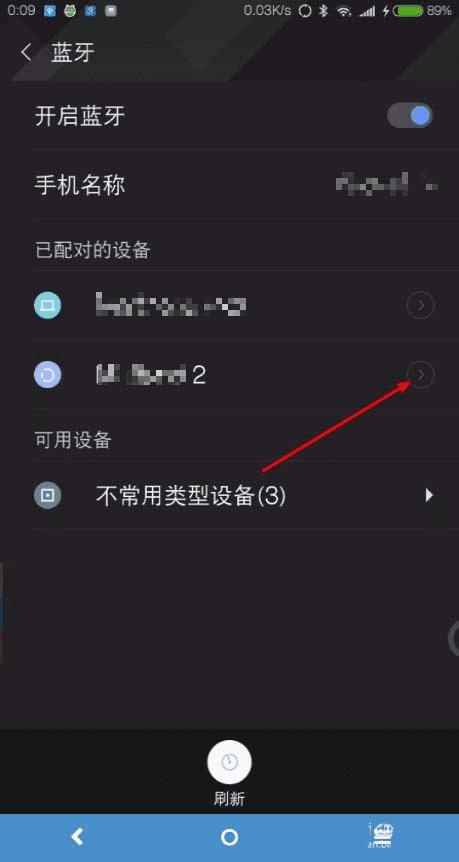 5、点击蓝牙功能底部的刷新,然后会扫描到蓝牙耳机,点击蓝牙耳机名称进行连接。稍微等待一会儿即可连接上去。