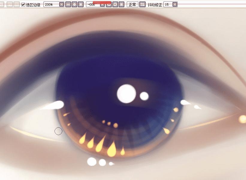 24、还是在刚刚的发光图层,但是笔的浓度要降低!不能超过高光的亮度!勾眼白的边枪。