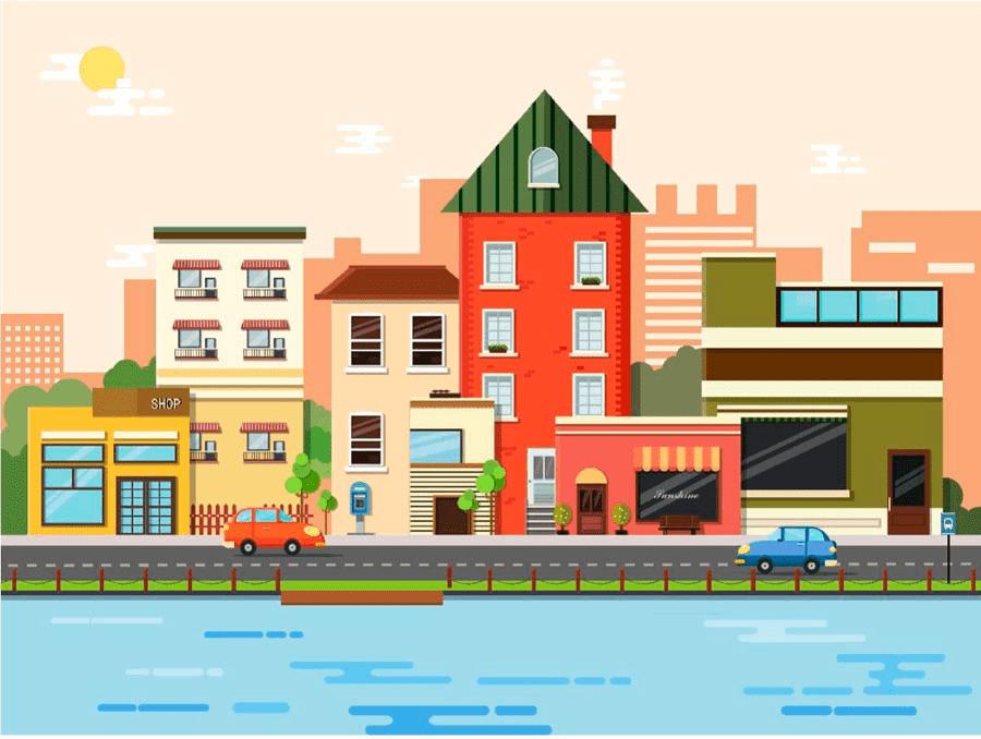 怎么样使用Al绘制扁平化风格街道场景插画?