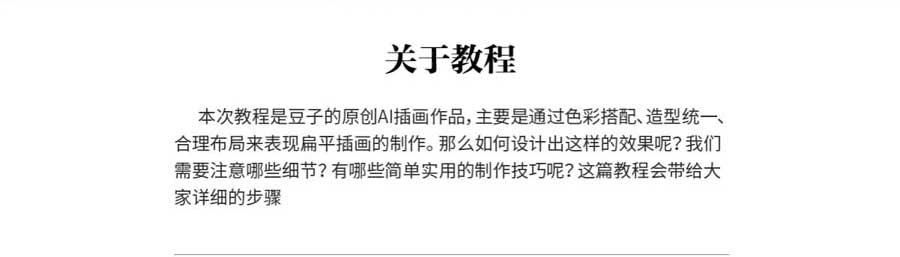 使用AI绘制一幅漂亮的扁平化风格街道场景插画,本次教程是豆子的原创AI插画作品,主要是通过色彩搭配、造型统一、合理布局来表现扁平插画的制作。那么,如何设计出这样的效果呢?我们需要注意哪些细节?有哪些简单实用的制作技巧呢?这篇教程会带给大家详细的步骤