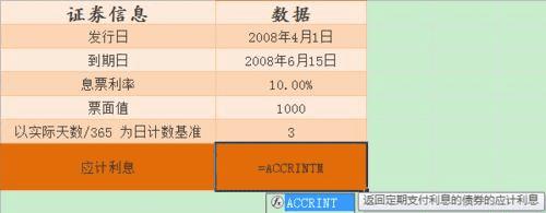 第一步,调用ACCRINTM函数,即输入"=ACCRINTM“;