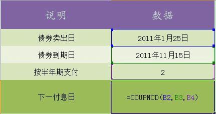 第三步,设定到期日,即输入“=COUPNCD(B2,B3,”;