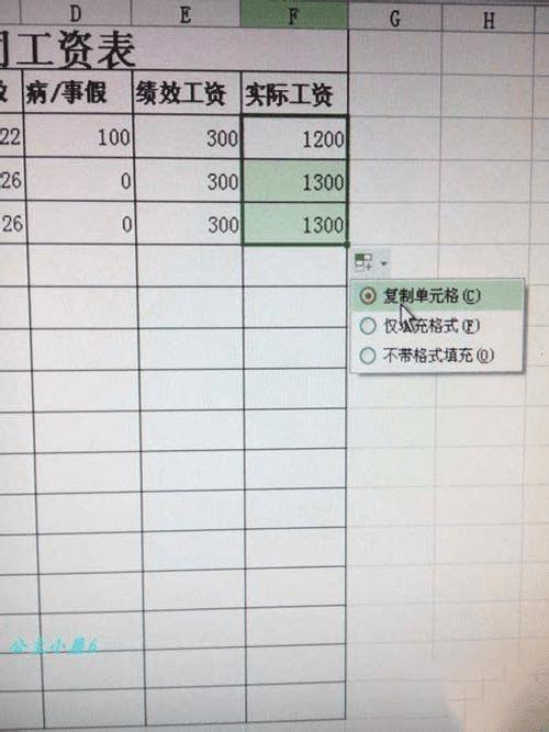 在这个工资表中需要用到加法(基础工资+绩效工资)和减法(工资总数-病/事假所扣工资)两个公式。