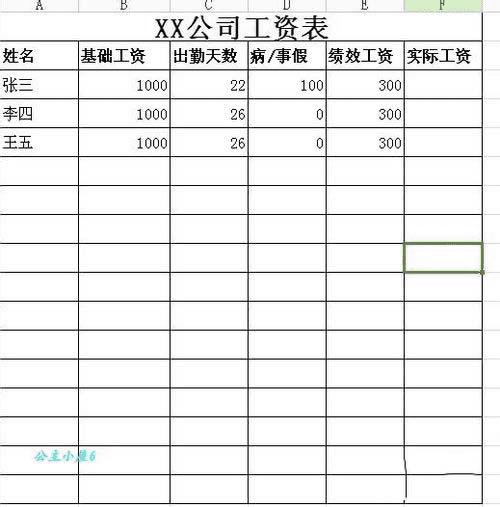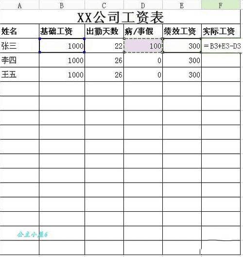 我们以一个简单的工资表为例,来说明这些公式。