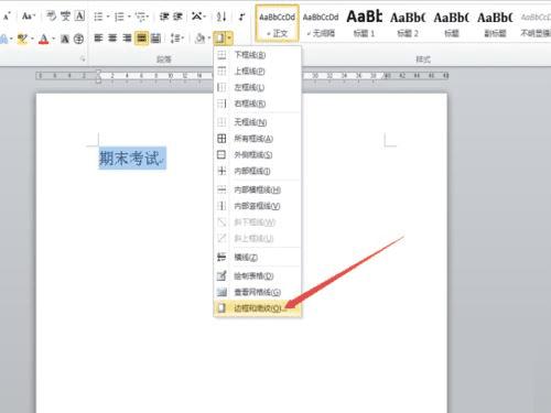 要想添加文字底纹,在操作前必须先选择对象,这里我选择了“期末考试”文字。