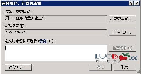单击查找窗口中的“高级”按钮,弹出 “选择用户、计算机或组”的窗口来。
