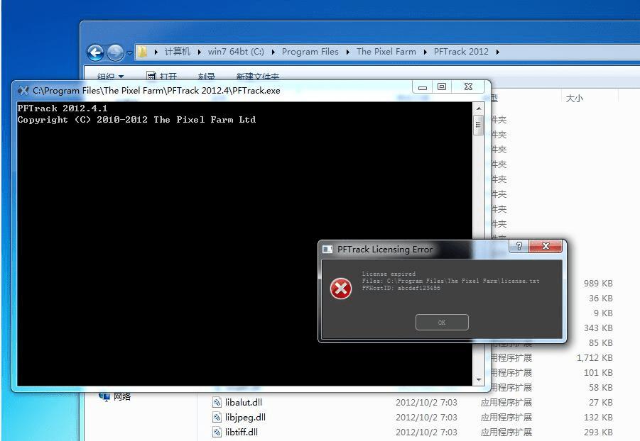 把弹出错界面最下面的ID:XXXX 复制到license.txt 里面的”hostid=“后面(替换后面的),保存到The Pixel Farm目录下