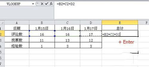 然后用鼠标全选需要求和的所有数字,然后再点击“Enter”键。(如下图)