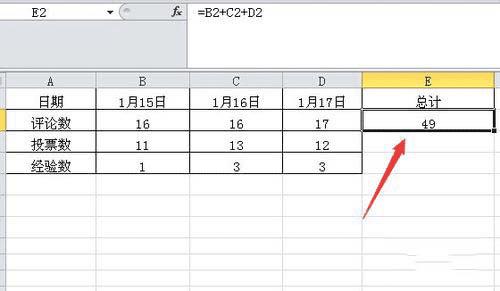 这样在总计对应的单元格中就可以看到求和后的总数。(如下图)