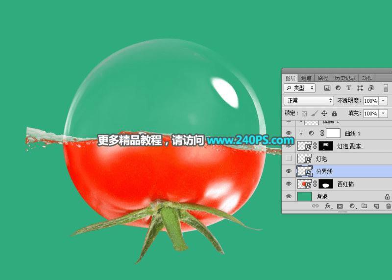 如何在ps中合成盛有西红柿液体的透明玻璃球?(6)
