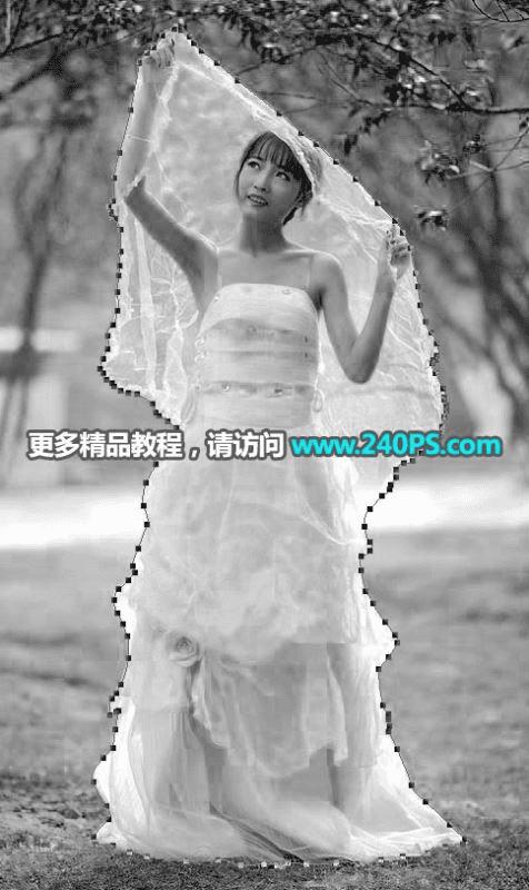 如何在ps中抠出树林中穿着好看的婚纱美女?(3)