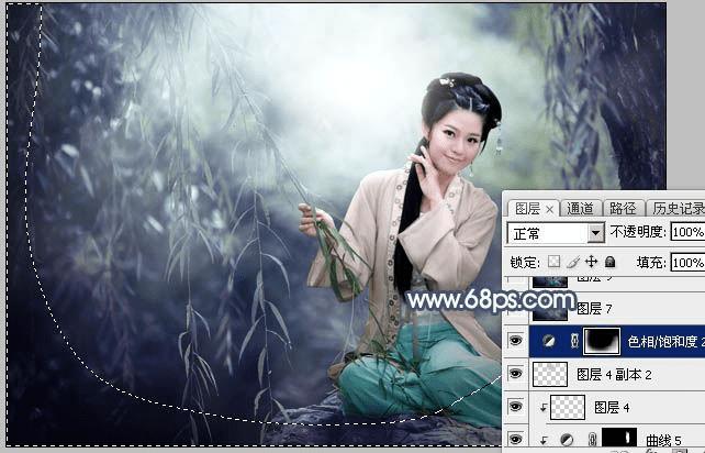 在ps中把外景美女人物调出唯美的古典青蓝色效果的方法(5)