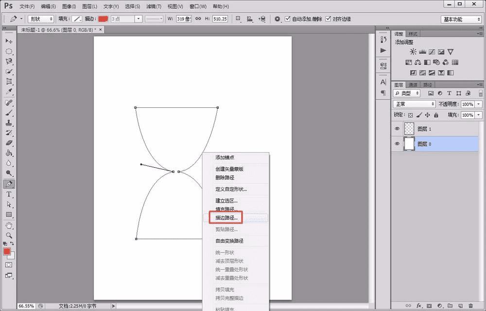 3、将画笔调整为适宜粗细和颜色,点击鼠标右键,选择“描边路径”选项,完成描边。
