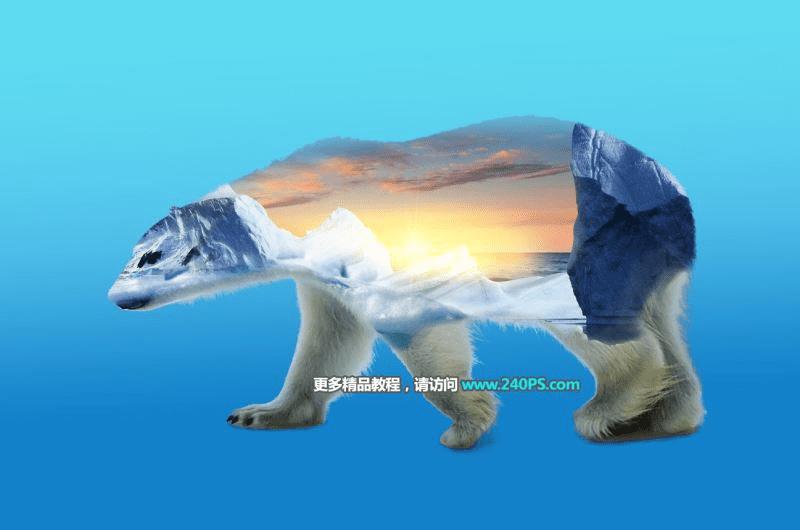 如何在ps中合成北极熊与霞光的曝光效果?