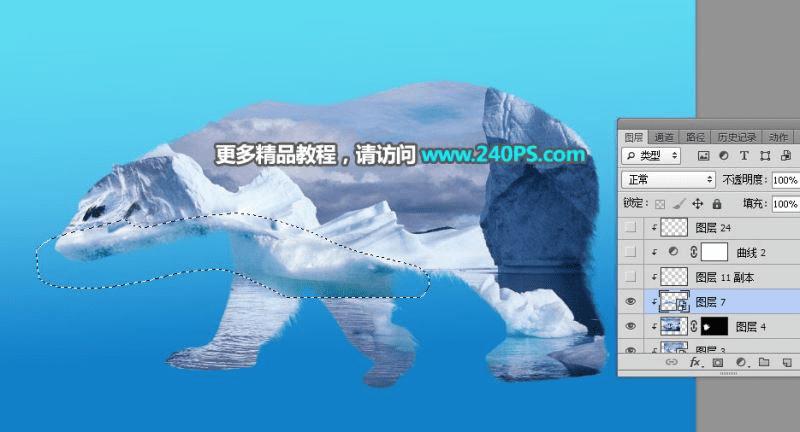 如何在ps中合成北极熊与霞光的曝光效果?(3)