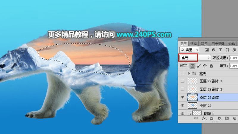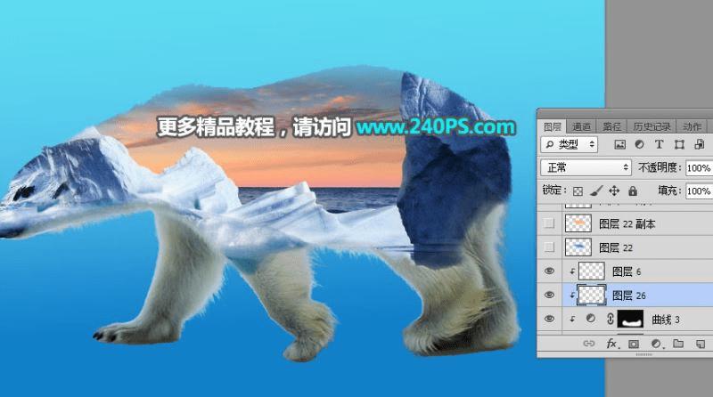 如何在ps中合成北极熊与霞光的曝光效果?(7)