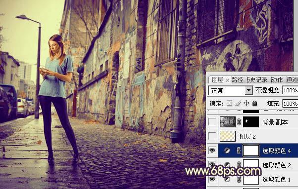 在ps中将人物街景调出怀旧照片的效果的方法(3)