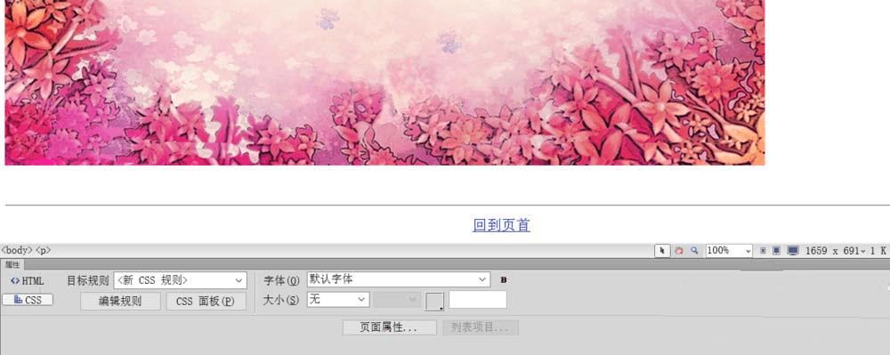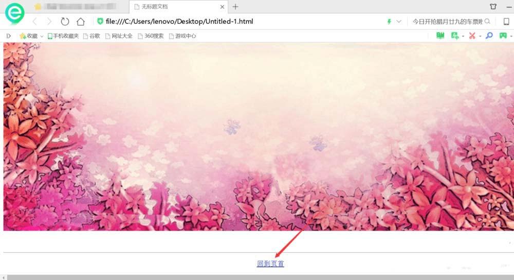 3、完成后保存为html文件,完成后在游览器中打开,点击“回到页首”(链接的文本),页面便可以立即回到命名锚记链接的指定位置。(效果如图所示)