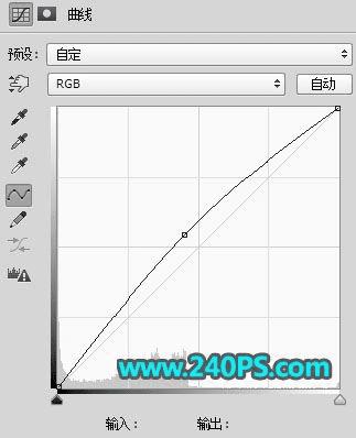 11、创建一个曲线调整图层,把RGB通道调亮一点,参数及效果如下图。