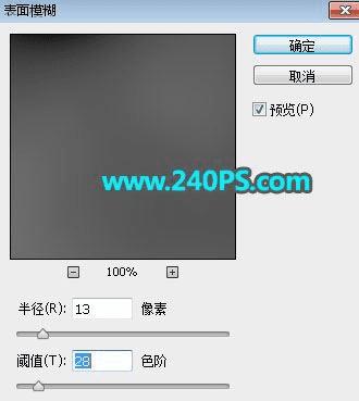 10、选择菜单:滤镜 > 模糊 > 表面模糊,参数及效果如下图。