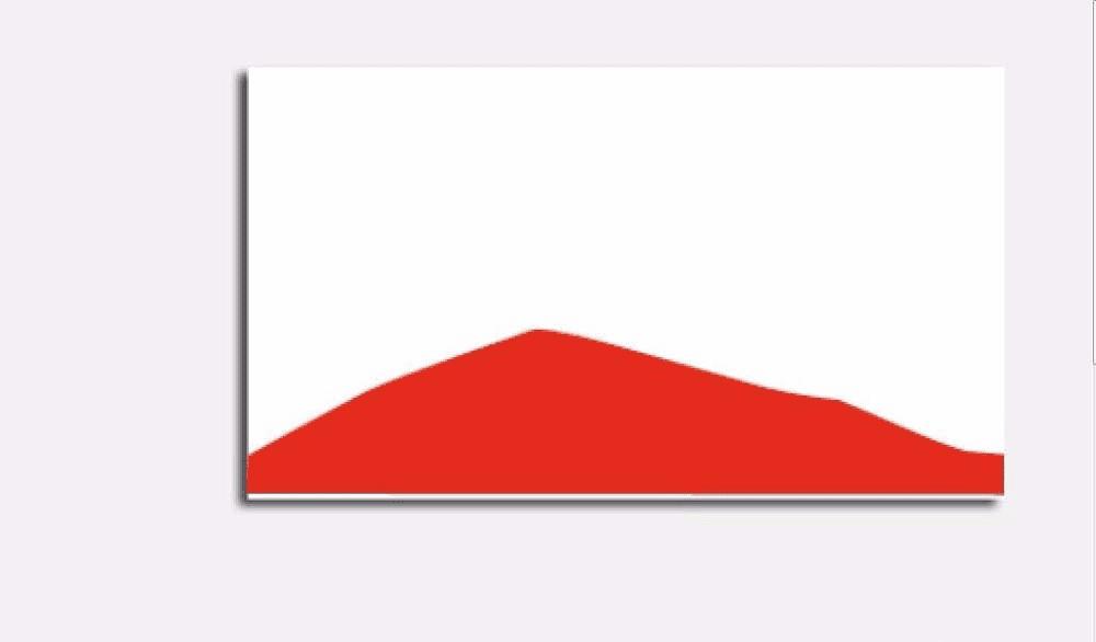 2、根据自己的LOGO色彩来创意,我们做的这个LOGO色彩有着两种颜色,一种为火红色,另外一种为深红色。我们的背景色装饰条也用这两个色调来呈现。先使用钢笔工具把深红色区域的路径描绘出来,呈现一个自然的曲线在名片的背景上面。