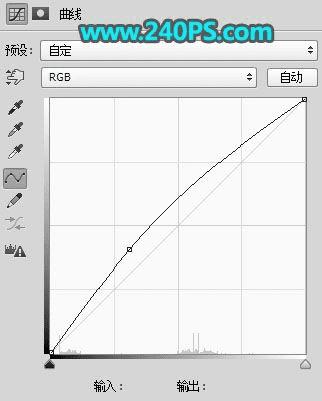 28、创建一个曲线调整图层,把RGB通道调亮一点,参数设置如下图,确定后创建剪切蒙版。