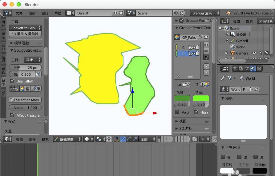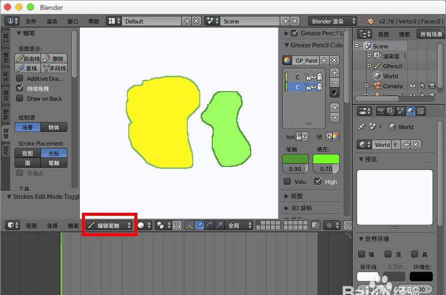 8、如果要编辑这些笔触可以底部切换到“编辑笔触”,这样我们就可以像编辑其他模型一样编辑笔触了,使用g移动使用c选取等。