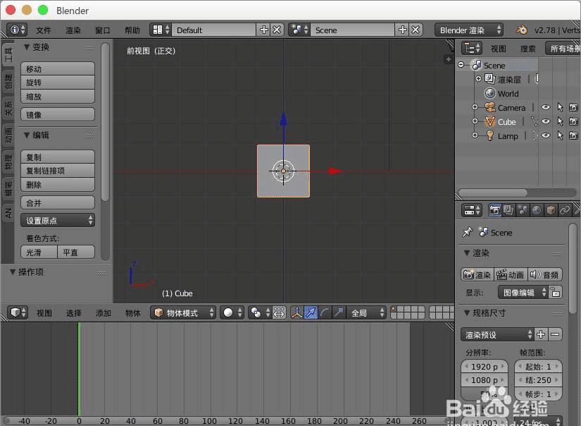 1、打开blender按数字键盘的1和5切换到“前视图(正交)”。