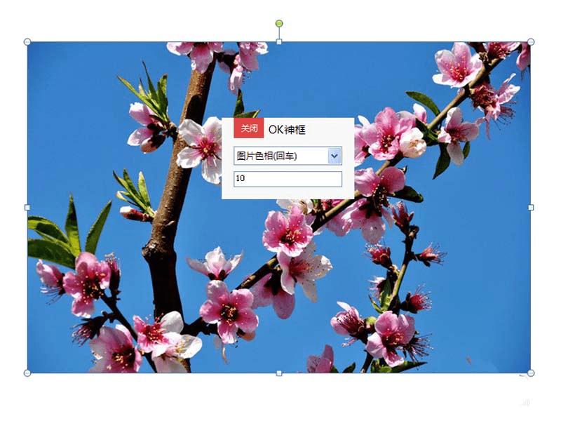 3、在弹出的对话框中选择图片色相,接着在下面输入框中输入数值,比方说输入10.