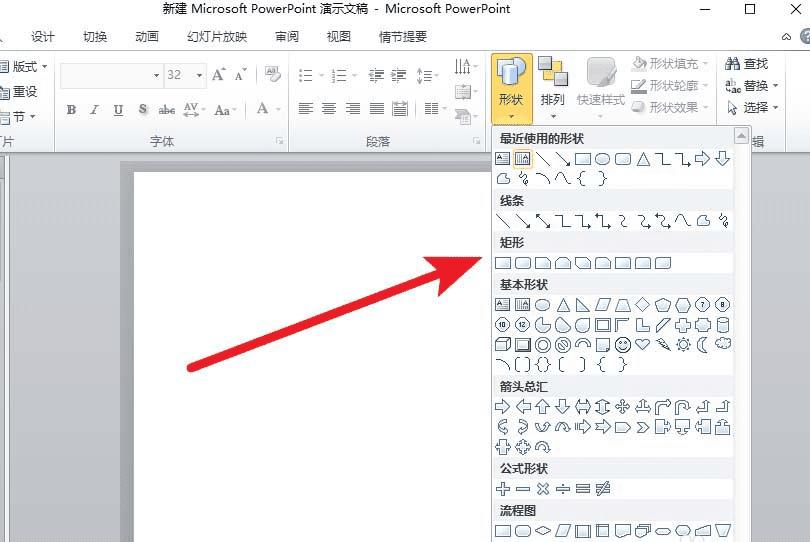 1、打开Microsoft PowerPoint 2010,新建一个形状,例如矩形;