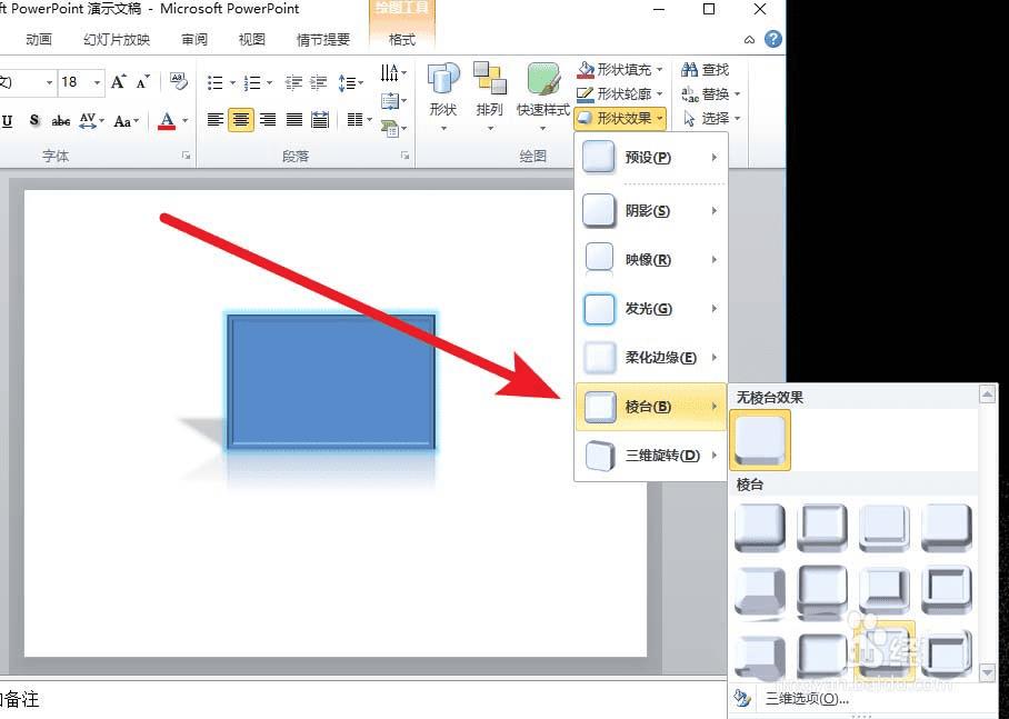 6、棱台在PPT中显示的并不合理,可以先将对象转为3D样式,然后添加棱台才会有明显效果;
