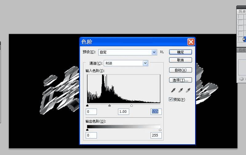 7、执行图像-调整-色阶命令,设置参数为0,1.00,155,点击确定按钮,接着取消选区。