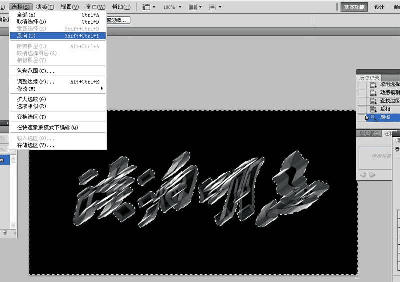 6、选择工具箱里的魔棒工具,选择背景,执行选择-反向命令,进行反眩