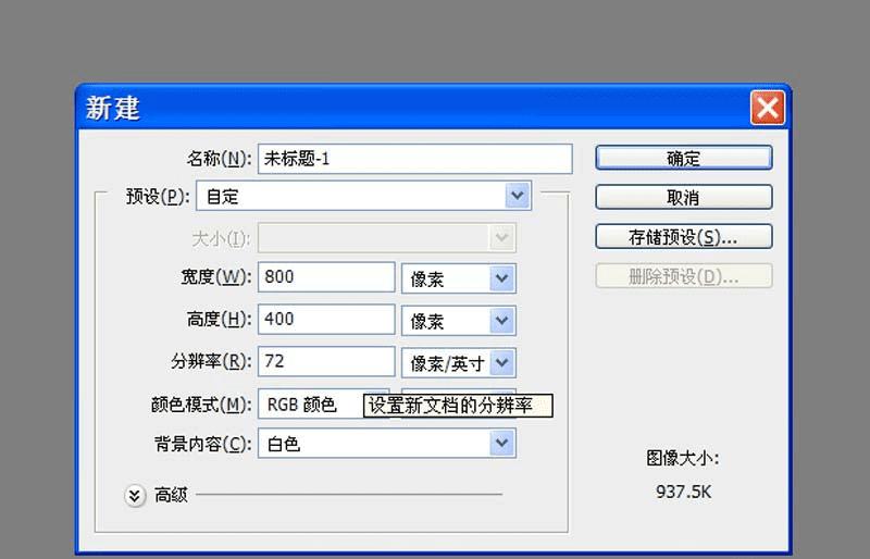 1、首先启动Photoshop cs5,新建一文档,大小为800*400,背景颜色为白色。