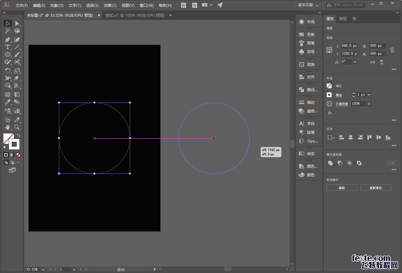 再选中这两个正圆按住Alt鼠标拖动复制出来一组拖到一边:
