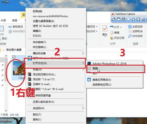 1、首先在图片上点击“右键”,然后选择“打开方式”,再点“画图”。