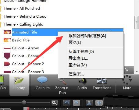 2、选择一个你喜欢片头材料,然后点击右键,将它添加到时间轴中剪辑。