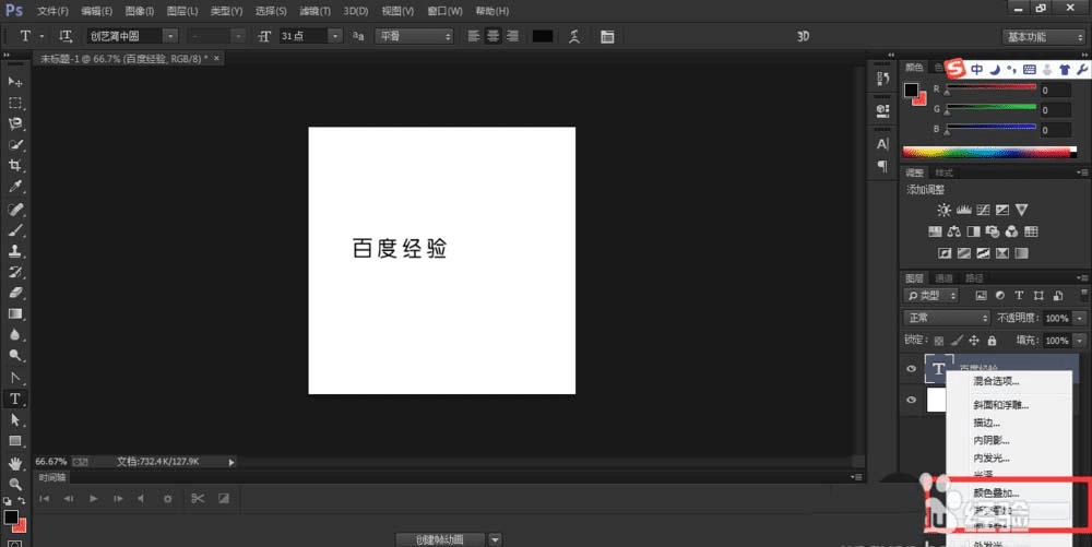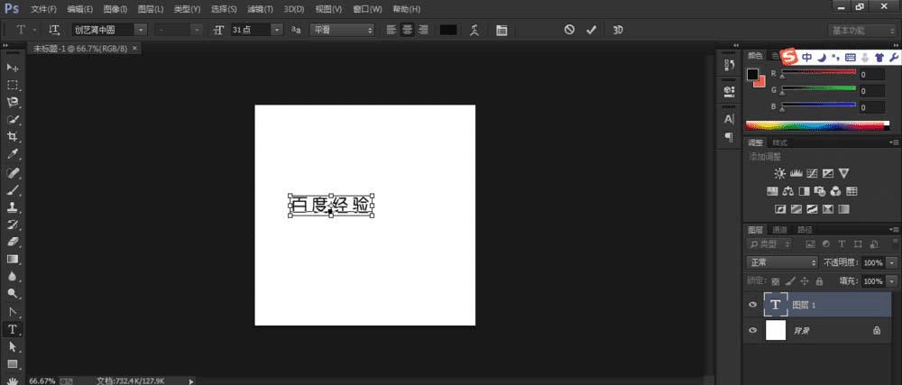 2、选择文字工具,在文档中输入文字,如下图,你也可以输入其他文字。