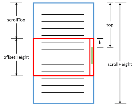 蓝色框代表一个很长的文档,文档的高度可以通过 scrollHeight 属性获得。