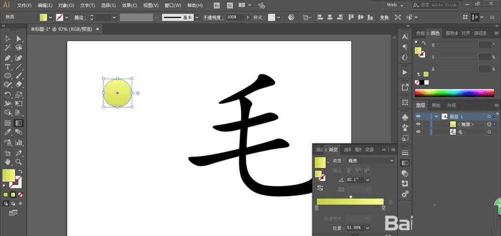 2、用文字工具写出“毛”字,修改一下大小和字体的类型。
