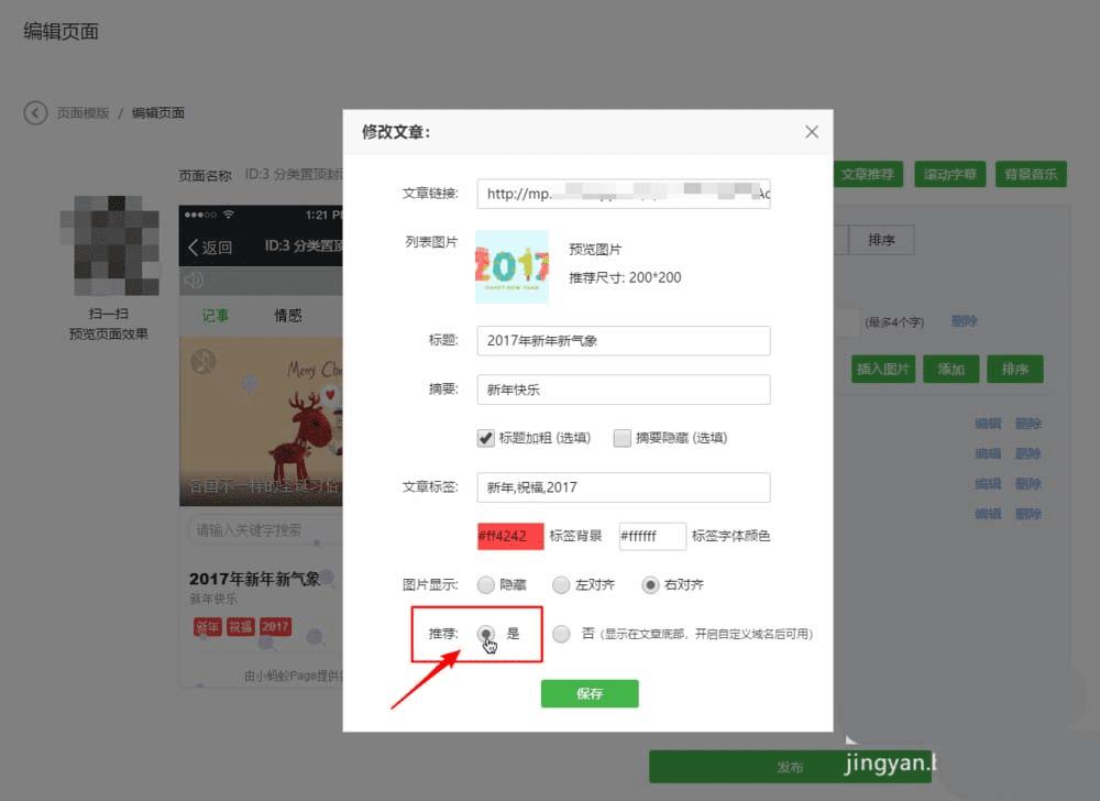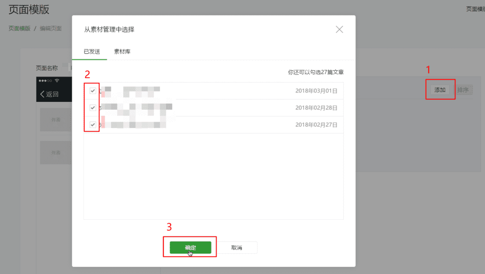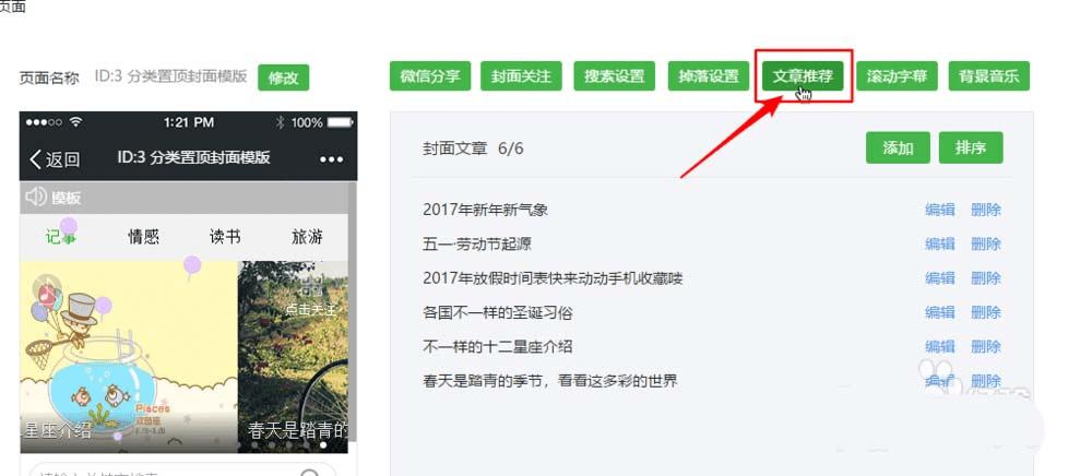 在微信公众号页面模板中添加文章推荐功能的步骤