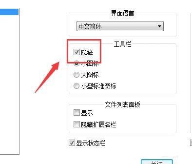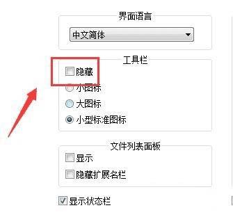 6、点击之后,如下图所示,在右边找到“工具栏”,在工具栏找到“隐藏”,取消隐藏前面小框的勾选;