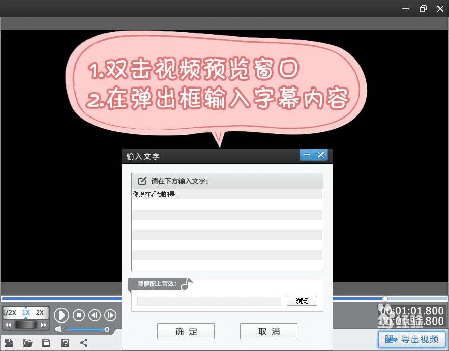 在顶部点击“字幕特效”选项卡,然后双击视频预览窗口,在弹出框把字幕输入进去~