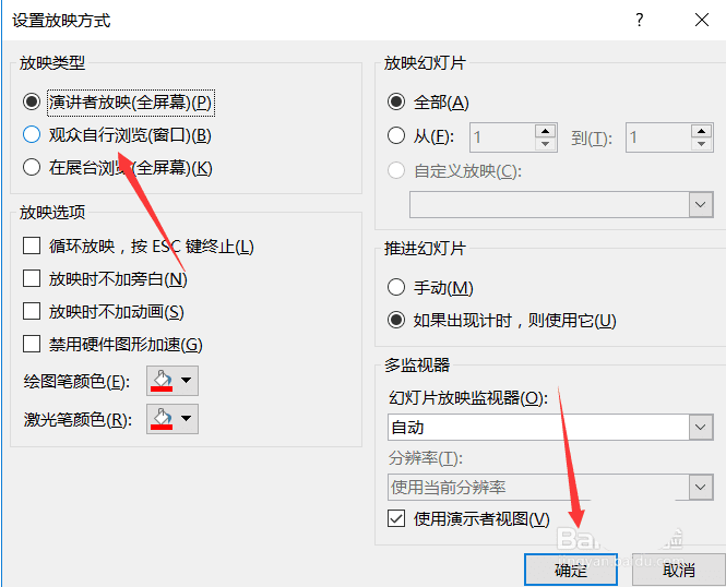 4、点击弹出二级菜单,这里我们选择第二个观众自行浏览模式,在它前面的勾选框进行勾眩