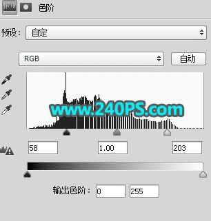 7、创建色阶调整图层,增加明暗对比,参数及效果如下图。