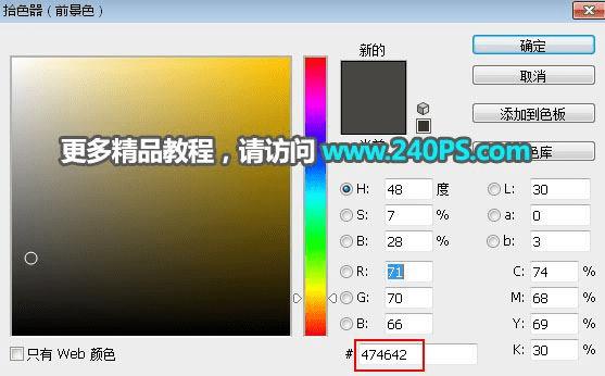 21、新建一个图层,填充暗灰色#474642,如下图。