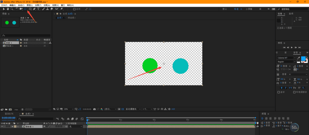 使用ae制作两个彩色小圆球互相旋转的动画效果的方法
