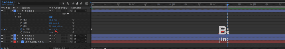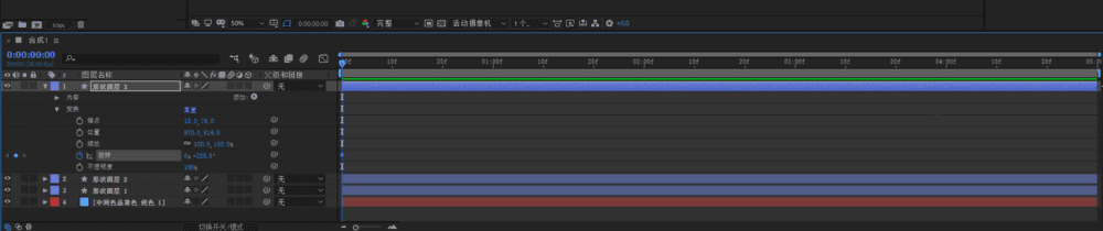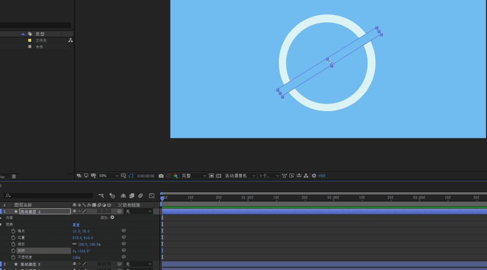 5、长方形的中心点调整与圆的中心点相同,最后打上旋转的关键帧,就ok了