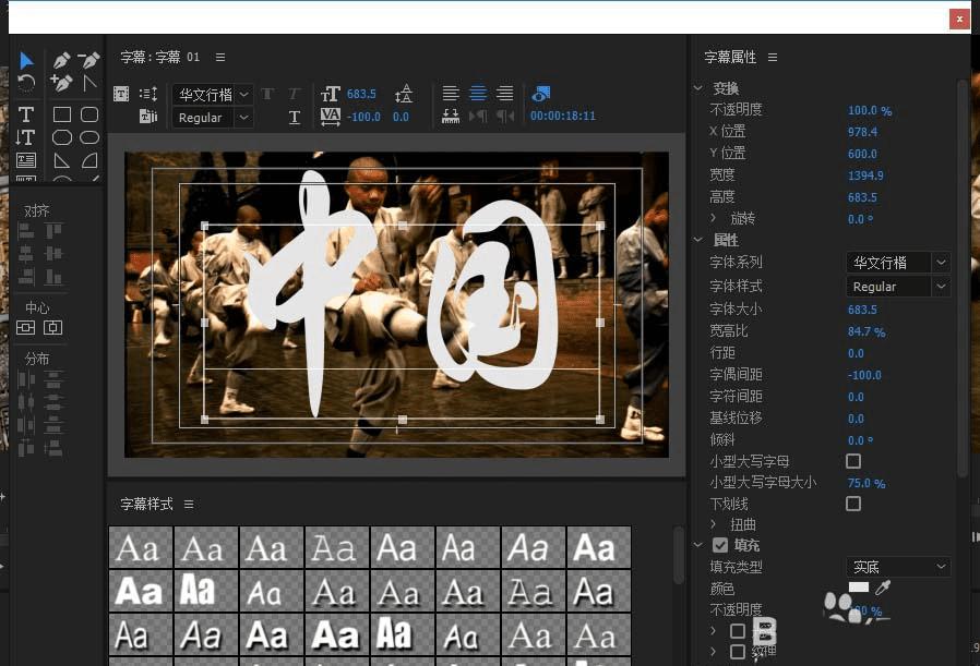 5、在弹出的字幕编辑窗口中,进行字幕的编辑,输入“中国”,然后设置调整好文字的大小字体样式与字体颜色等相应的属性效果。设置完成之后就可以直接退出字幕编辑。