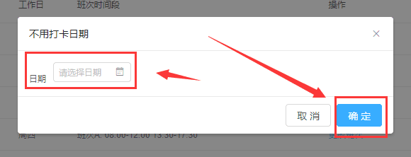 8、用同样的方法点击不用打卡的日期,需要注意的是这里只能选择不用打卡的日期,无法选择各考勤组,选择好后点击确定